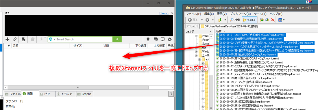 複数のtorrentファイルで一度に複数のダウンロード登録