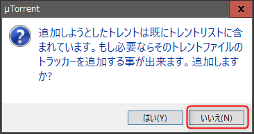何も言わずに無視されるqBitTorrentとは異なり、以下のダイアログが出ます。
