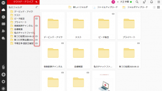 印のついてるフォルダは既に「公開」されているフォルダです。ただし、「公開」とは言っても、不特定多数の方が見れるわけではなく、フォルダのURLを知ってる人しか見れません。
