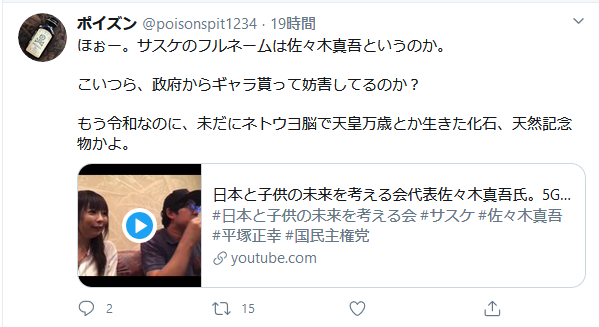 ここからわかることは、まずサスケが5Gの危険性について、一切何の知識も無いことです。こういった運動をやってる方であれば、常識レベルの知識さえありません。しかし、それはいいとしましょう。