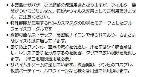 何のために使うのかわかりませんが、これもサバゲーで使うようです。顔面保護のため???
