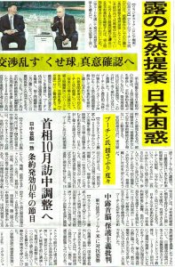 なぜ、平和条約に日本政府が困惑する理由があるんでしょうか?なぜ「くせ球」なのでしょう?なぜこれが「プーチンの揺さぶり」なんでしょう?全く訳がわかりません。「お互い敵対行為はせずに、平和で行こうね」のどこが嫌だというでしょう?