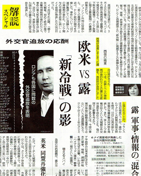 ポイントとしては、「西側が急速にまとまった理由」として「確たる証拠を、英政府が各国に示したと見られる」ことだそうです。皆さん、ここ笑うところですよ。ここ以外笑うとこありませんから。