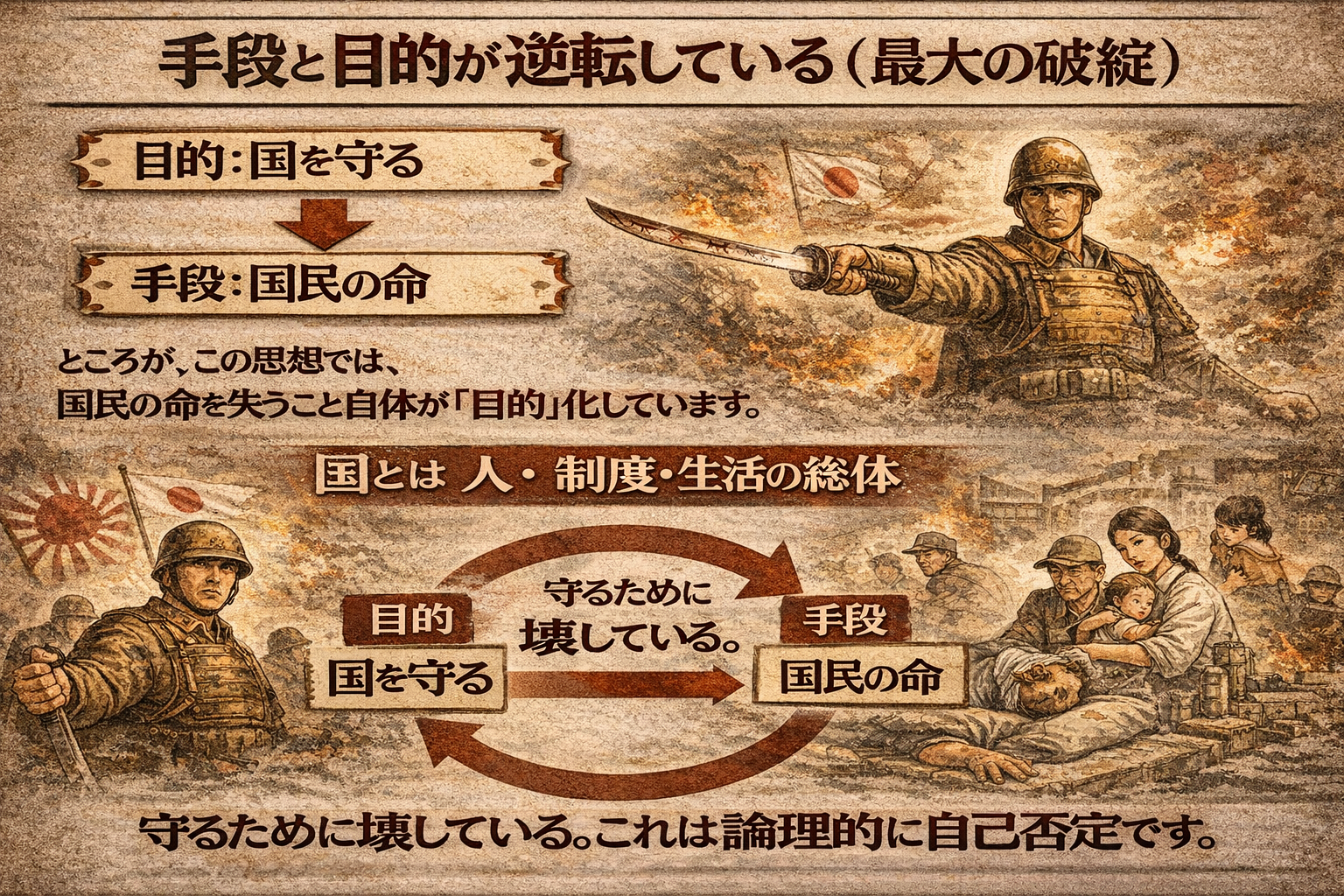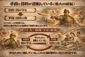 • それは論理的に破綻しており、国民を守るはずの国家が、責任を負わずに庶民の命を消費する支配装置として機能してきた。