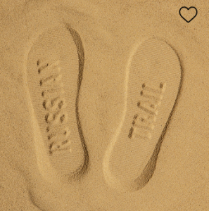 砂の上を歩くと、「ロシアの痕跡!」という跡がつくのでした。