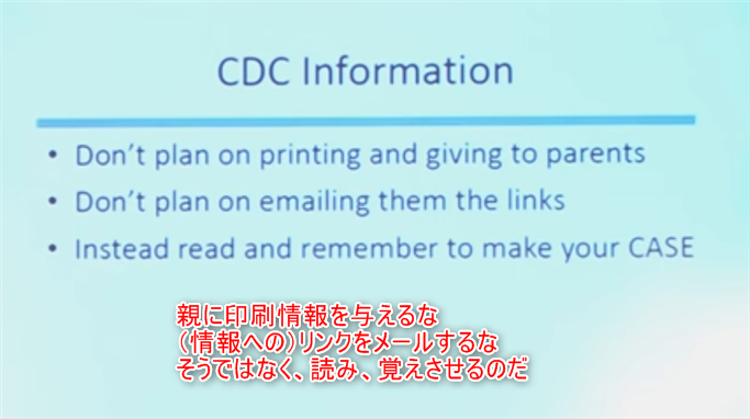 私はメイヨー・クリニックの別のスライドもお見せしましたが、そこでは、情報を与えるのではなく従わせろと。これも、親たちに対する不正行為だと思います。世界中の親についてですね、情報が与えられるのではなく従わせられているのです。