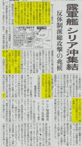さらなるウソポイントとしては、ロシアだけではなく米軍もこの地域に軍事力を集結させていることです。全く書いてありません。この記事にはこうありますね、「アサド政権軍を米国が攻撃するのを抑止する狙いがあるとみられる」と。当然ですが、ロシア側は米軍がその矛先をシリアに向けていることをキャッチしているからこそ軍事力を集結させているのです。