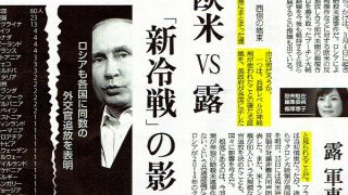 以前に書いた奴隷日報のロシア外交官追放洗脳スペシャルの奴隷日報、もとい読売新聞の記事以降、ポータンダウンの軍事研究所が、「軍事グレードのガスだが、どこで作られたかは我々の仕事ではない」と、ロシアを特定していないことを認めてしまい、奴隷日報と...