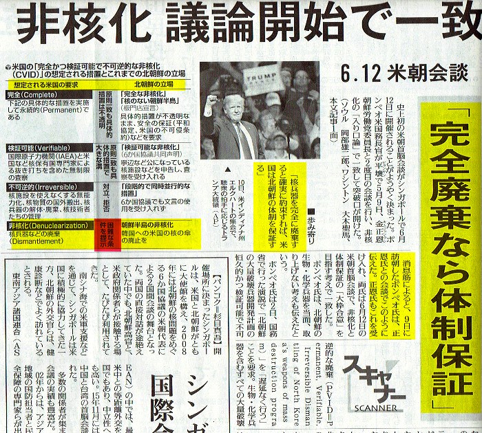奴隷日報、もとい読売ではこれまで、「微笑み外交に惑わされるな」とか「脅迫の材料にしている」とか「北朝鮮の非核化の意思には疑問だらけだ」と口角泡飛ばして主張し、その一方で「何故北朝鮮が核やミサイルを持つのか」をできるだけ国民にわからないように報道してきました。
